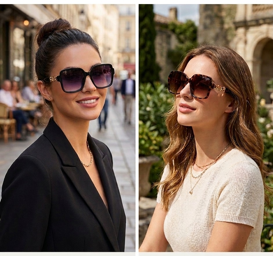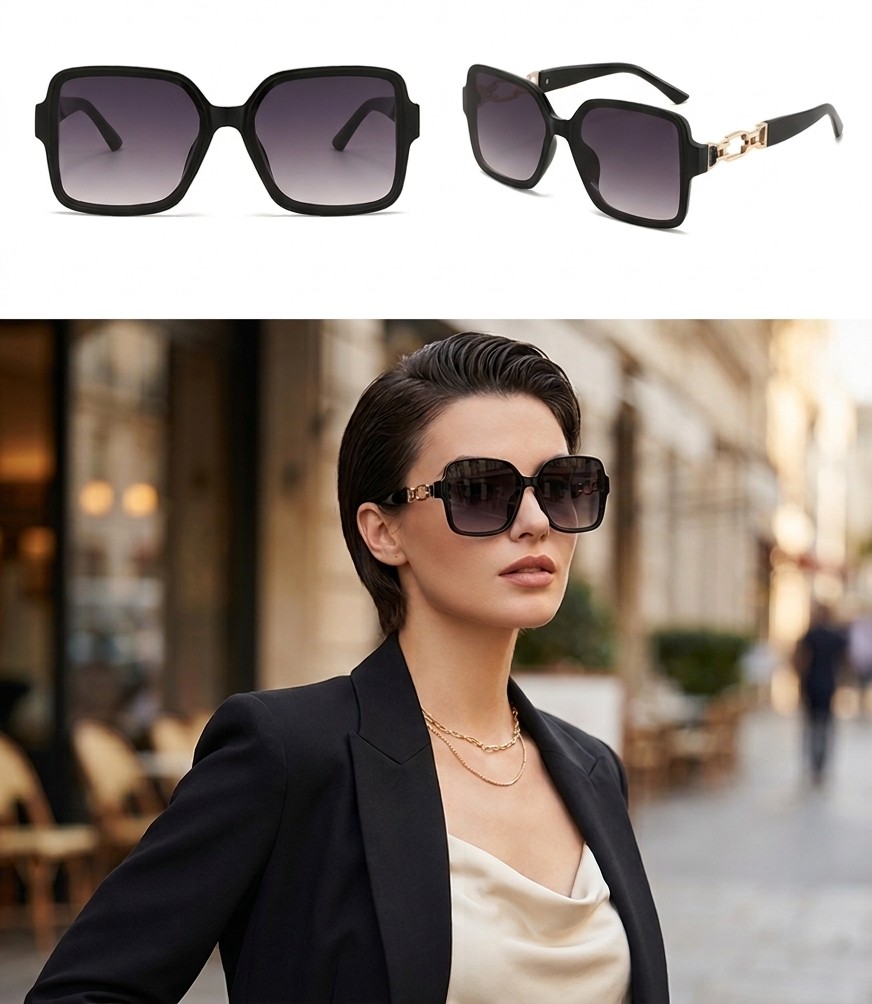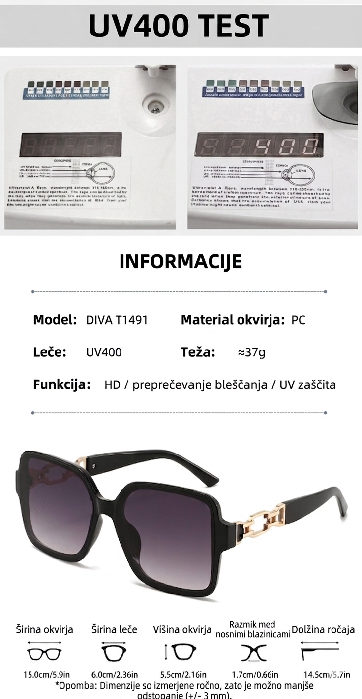 Izrazite svojo samozavest z očali DIVA! Ta model združuje drzen kvadratni dizajn z elegantnimi kovinskimi detajli na ročajih in ustvarja popoln videz za sodobno žensko, ki želi izstopati.
