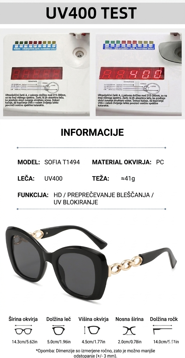 Iščete popolno kombinacijo stila in zaščite? Sončna očala SOFIA nudijo UV400 zaščito, HD vid in eleganten dizajn. Hitra dostava in vrhunska kakovost!