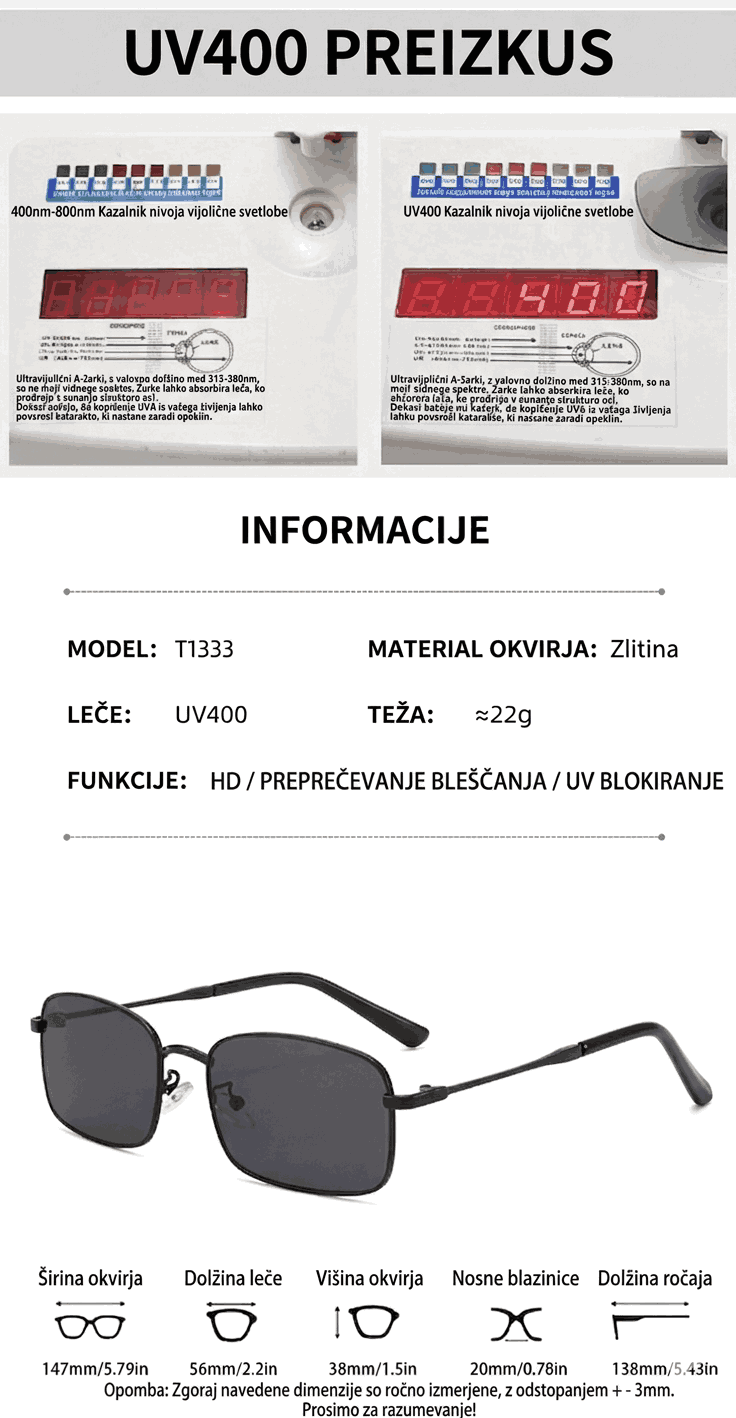 * UV BLOCKING: Maksimalna varnost v vseh svetlobnih pogojih.