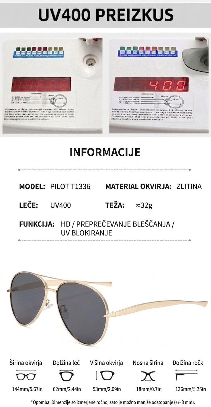Vrhunska sončna očala PILOT T1336. HD polarizacija, UV400 zaščita in lahek kovinski okvir. Elegantna izbira za popolno zaščito vaših oči!